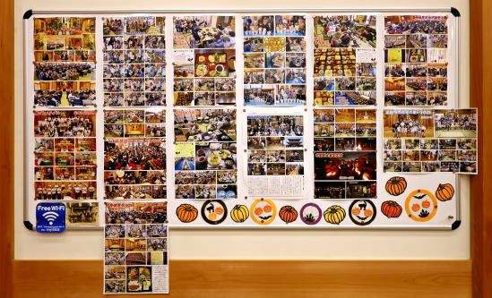 右前方は行事の写真報告コーナー