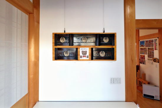掲示面は銀杏の一枚板を用い、屋根部にはタモ材を使用しました