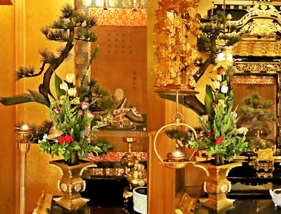 昨年末に4日間もかけて仏華の会さんが正月仏華を立調して下さいました